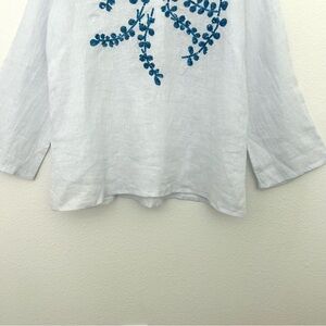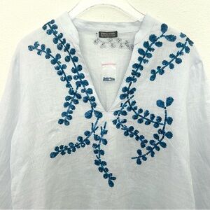 Maliparmi Anthropologie Linen Tunic Top Euro Summer Blouse V-Neck Sequin White Lotus Blue NWOT Size Small / IT42