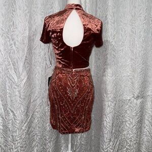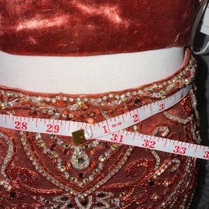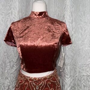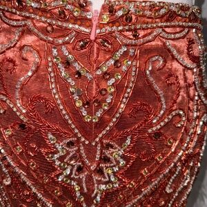 Malisha orange 2 piece set size 6 rhinestoned bedded a velvety top new with tag