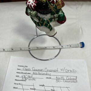 Mallarusky Glass Snowman Ornament and Stand MCM Vintage Christmas Decor Cottage