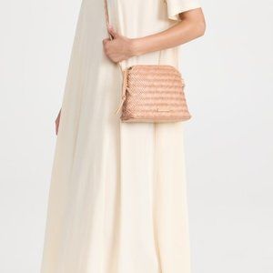 An everyday-friendly Loeffler Randall bag in a scaled-down silhouette, crafted entirely from light-colored woven leather in a chevron pattern.