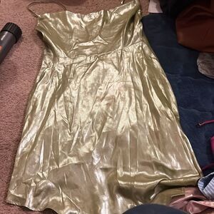 Mallory Metallic Asymmetrical Mini Slip Dress Adjustable Strapssmall