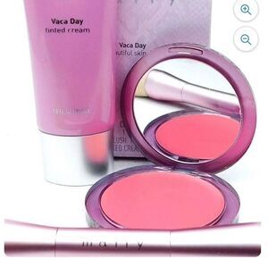 Mally Vaca Day Beautiful Skin Duo medium: Brush, Blush bashful .18 Oz., Tinted Cream medium 1 Fl Oz.