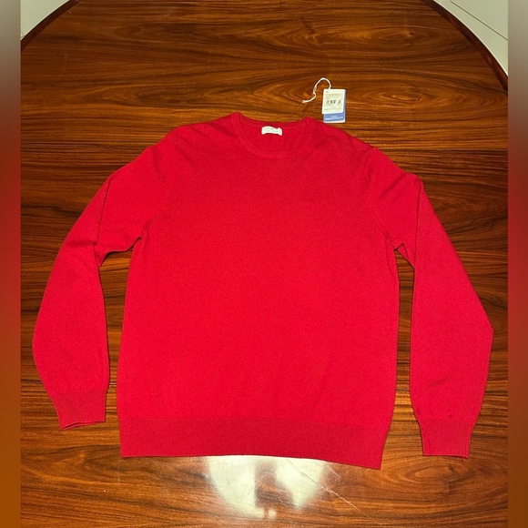 Luxury Malo Optimum cashmere sweater in a rich red color. Ultra soft cashmere construction with classic crewneck styling. New with original tags attached.
