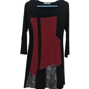 Maloka Formal Burgundy and Black Geometric Midi Dress (above knee) Black/Red