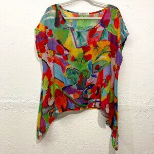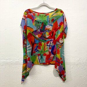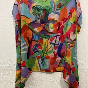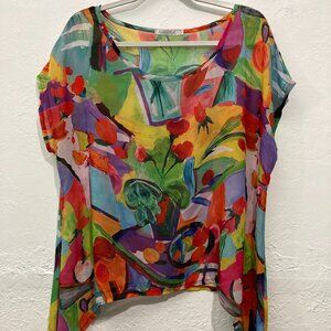 Maloka Womens Top Sheer Art to wear Multicolor Lightweight Lagenlook Size 2