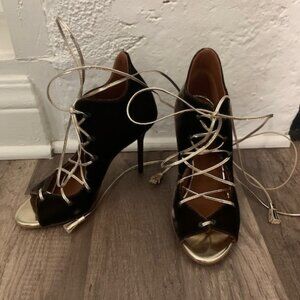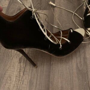 Malone Souliers Brown Velvet Savannah Open Toe Ankle Wrap Pump Heels EU 37 US 7