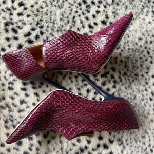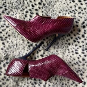 Malone Souliers Gigi Elaphe Ankle Boots Burgundy Leather Snakeskin Print IT 39.5