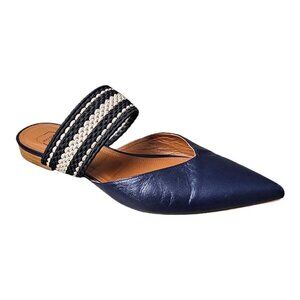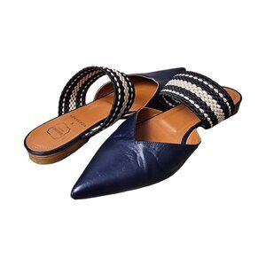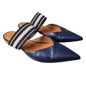 Malone Souliers Hannah x ROKSANDA Navy Leather Maisie Pointed Toe Flat Mules Size 40 US 9/12