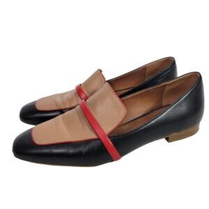 Malone Souliers Jane Flats Black ColorBlock Leather Shoe Slip On Loafer Size 7.5