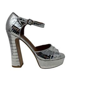 Malone Souliers Keaton Platform High Heel Sandals silver mirror size 38 8 disco