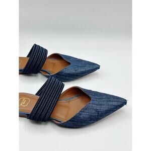 Malone Souliers Navy Blue Canvas Maisie Luwolt Pointed Toe Flat Mules 36 US 6