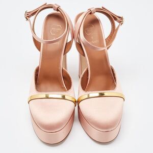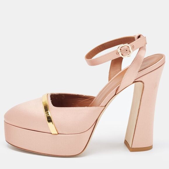 Malone Souliers Pink/Gold Satin Platform Mora Pumps Size 39