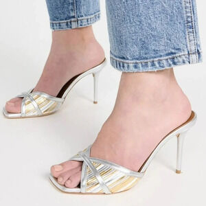 Malone Souliers Women's Perla 85 Metallic Mules Sandals Size 36.5 EU (MSRP $695)
