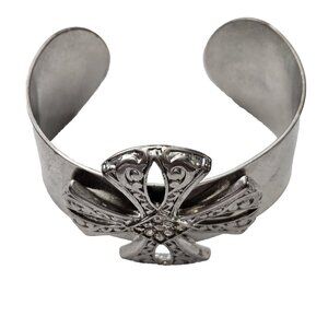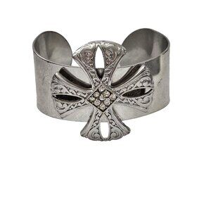 Maltese Cross Silver Rhinestone Tone Cuff Bracelet