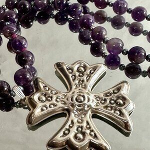 Maltese Cross Sterling Silver Genuine Ruby Tahitian Pearls Amethyst Necklace 925