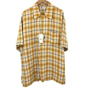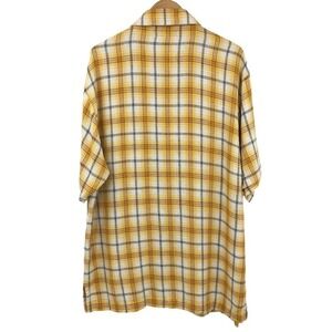Maltos Men’s Button Up Shirt Size Large Plaid Linen Rayon Blend Short Sleeve Yellow