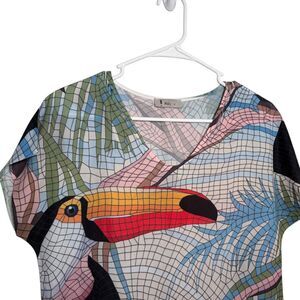 Malu Blouse Women's Small Colorful V-Neck Short Sleeve Artsy Top Shirt