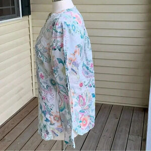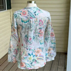 Malvin 100% Linen Top Size Small US 6 Long Sleeve Floral Print Blouse Boho