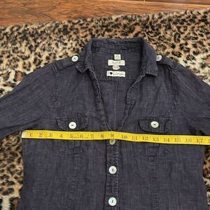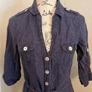Malvin Blue 100% Linen Button Closure Belted Roll Tab Dress