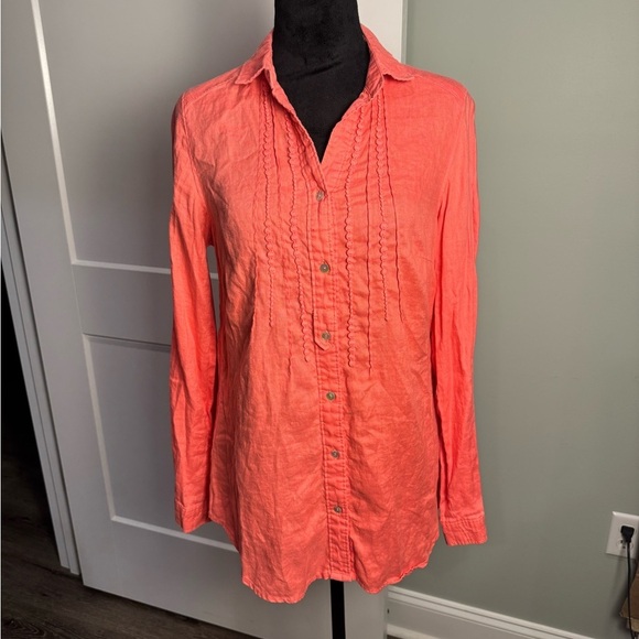 Malvin Germany I love linen coral pin tuck long sleeve blouse collared button