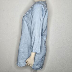 Malvin Hamburg I Love Linen Blue Embroidered Tunic Top 100% Linen XL