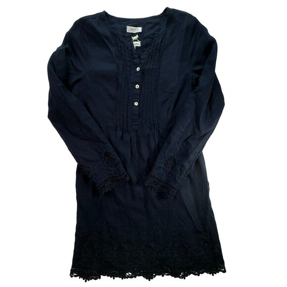 Malvin Hamburg Linen Navy Embroidered Tunic Dress Long Sleeve Boho Size S