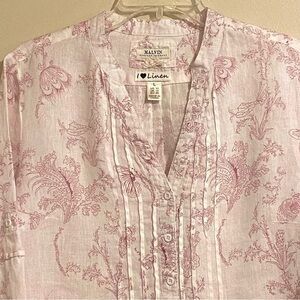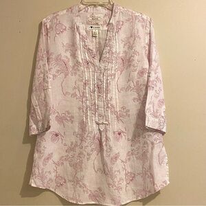 Malvin I Love Linen L(10) Floral Linen Popover Tunic Top Made in Germany