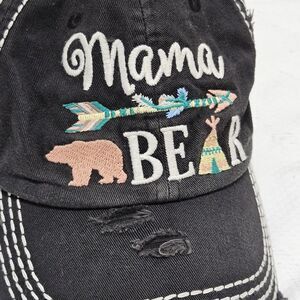 Mama Bear Distressed Logo Embroidered Ball Cap Black Kbethos Vintage Brand
