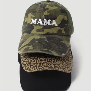 Mama Embroidered Leopard Animal Print Distressed Baseball Hat Cap
