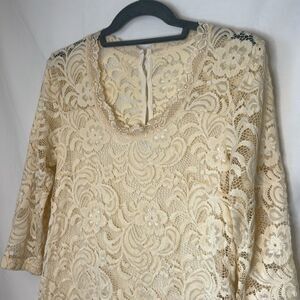 Mama Lucious EUC cream lace/woven maternity blouse Size medium