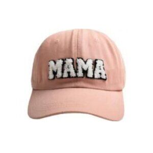 Matching mama and mini cotton caps with chenille hand sewn patches. Adjustable.