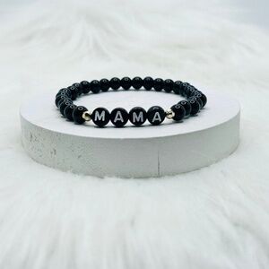 Mama Natural Stone beaded Bracelet Elastic bind 4mm black stone beads Length 7in - 7.5in