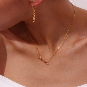 Mama Pendant Necklace Zircon 18K Gold Plated Stainless Steel