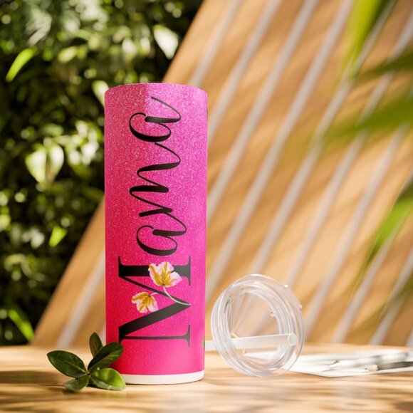 Mama Skinny Tumbler with Straw, 20oz | Floral Glitter Drinkware