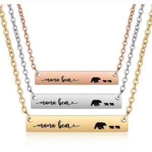 Mama bear necklace. Stainless steel bar and chain. Adjustable chain. Silver.