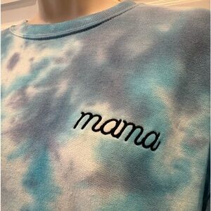 Mama crewneck sweatshirt Tie-Dye Sweater blue cozy size large BFFs & Babes