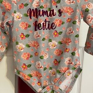 Long sleeve floral bodysuit that says Mama’s Mini on front