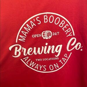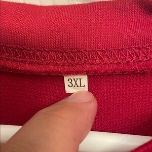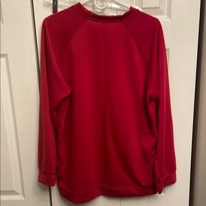 Bold red sweater with white graphic print. Comfortable and stylish.