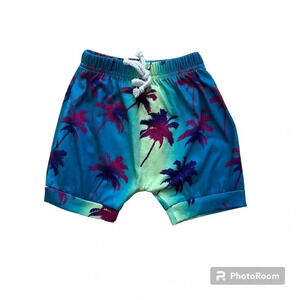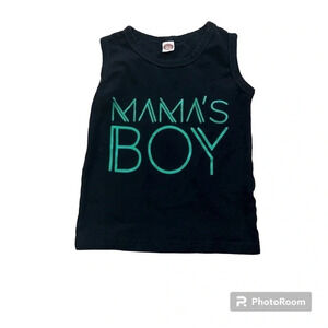 Adorable matching set tank and shorts 12M. The black tank says Mama’s Boy and tropical drop crotch shorts. Some wash wear on the shorts. Other than that I’m good condition.