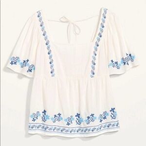 Mamma Mia Summer Blouse Old Navy Square Neck Floral Embroidery Blouse Open Back