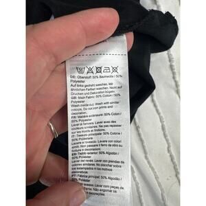 This Mammut Core women’s t-shirt is a sleek, performance-inspired piece with a touch of mountain personality. In classic black, this short-sleeve shirt features a standard women’s cut with small side slits (about 1” long) for subtle style and ease of movement. The left side of the shirt showcases a minimalist vertical ski-themed graphic, including stylized skis, a Wi-Fi “SEND” icon, a mountain peak design, and the Mammut logo in orange.