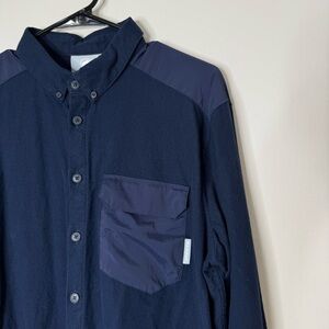 Mammut Men’s Navy Blue Flannel Nylon Button Down Chest Pocket Long Sleeve Shirt