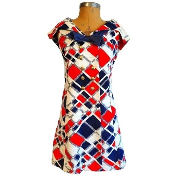 Mam'selle by Betty Carol Stunning Mod Sailor Funky Patriotic Vintage Dress