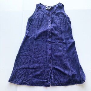 Mamta Embroidered Button Down Sleeveless Purple Dress Womens One Size