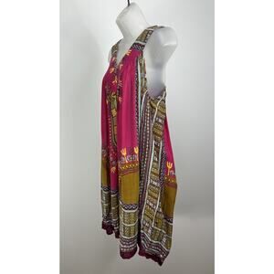 This beautiful Mamta maxi dress is perfect for any woman looking to add a touch of style to their wardrobe. The dress features an Aztec print in a lovely pink color, making it a great choice for any occasion. The dress is designed to fit most women, with a size type of "Regular" and a size of "One Size".
