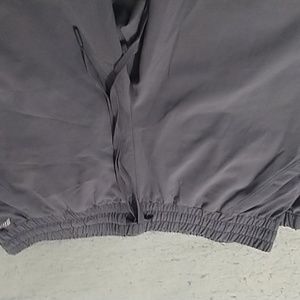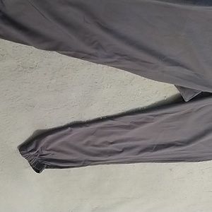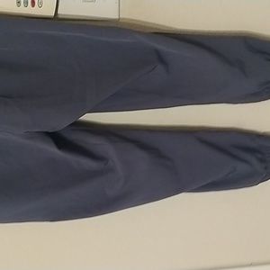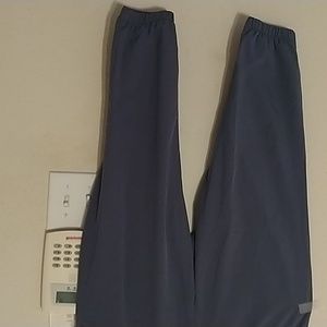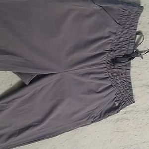 Mens Amazon and essential pants 90% polyester and 10% ElSTAN colour Gray wear three times to small for him two pockets at front elastic waist with strings on the front elastic feet this is 16, length 33