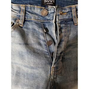 Man Boohoo Man, Men's Skinny, Frayed holes, Patches, 5 pocket, Blue Jeans, 28R