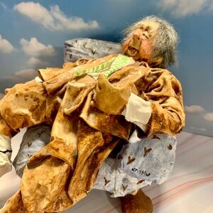 Well crafted Vintage Large Paper Mache Man sitting in his comfy chair. Sold As Is.