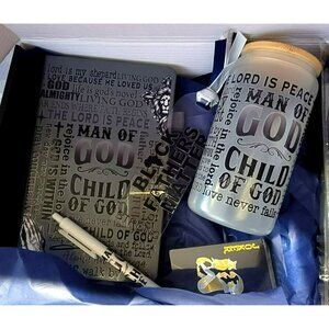 This set includes a faith-themed journal, a matching pen, Bookmark, an inspirational frosted tumbler, and playing cards. Ideal for spiritual reflection and daily motivation.