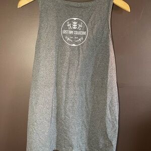 Charcoal tank top with striking red and white design. Ideal for everyday wear.